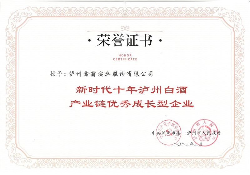 瀘州鑫霸實(shí)業(yè)股份有限公司榮獲“新時(shí)代十年瀘州白酒產(chǎn)業(yè)鏈優(yōu)秀成長型企業(yè)”,集團(tuán)董事長、黨委書記魏云飛出席授牌儀式。